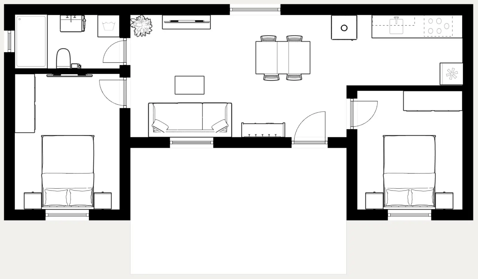 Model Atria svojim jedinstvenim U-tlocrtom redefinira pojam privatnosti na 66m2. Arhitektura kuće osmišljena je u tri zone: dva bočna krila u kojima su smještene spavaće sobe za miran san, te središnji volumen s otvorenim prostorom kuhinje, blagovaonice i dnevnog boravka koji spaja cijelu obitelj. ​Ovakav "zagrljeni" oblik kuće nije slučajan – istureni blokovi spavaćih soba prirodno štite središnju terasu od vjetra i znatiželjnih pogleda, stvarajući intiman vanjski atrij koji postaje produžetak vašeg dnevnog boravka. Dok unutrašnjost nudi pametno iskorišten svaki kvadrat s kupaonicom i open-space zonom, vanjština oduševljava bogatim krovom od crijepa u mediteranskom stilu i autentičnom kamenom fasadom koja skriva vrhunsku STIROTON izolaciju. Atria je dom koji vas čuva – idealan za obitelji koje žele toplinu zajedništva, ali i svoj mirni kutak.